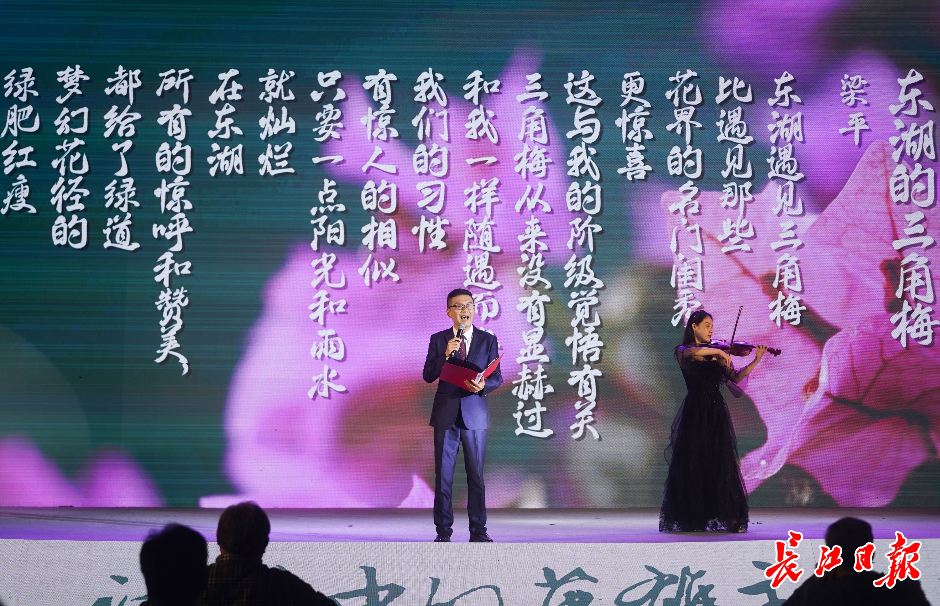 2023年10月26日,“英雄城市 文学先锋”2023武汉文学季东湖诗歌节于2023年10月26日晚举行。田杨诗朗诵《东湖三角梅》。长江日报记者 彭年 摄