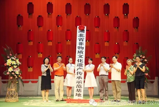 经过专家严格考察和评审,授予武汉楚剧院“湖北省非物质文化遗产(楚剧)传承示范基地”。武汉楚剧院现有3名国家级非遗传承人、3名省级非遗传承人、9名市级非遗传承人,艺术实力雄厚,剧院制定有明确的楚剧传承目标和传承计划,常年定期开展剧目、声腔、表演、音乐的教学、传承、研讨、交流活动,通过传承,培养了一批新生力量,在全省戏曲界具有较高的社会声誉和剧种龙头地位。