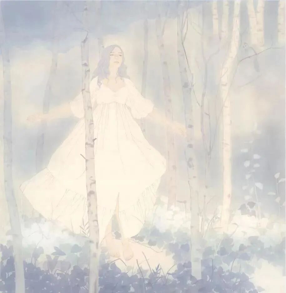 作品简介:该作品由湖北省美术院青年艺术家高佩育创作。作品运用中国画传统工笔技法,绢本设色,将女孩形象置于优雅梦幻的园林环境中,表现了她对未来美好生活的憧憬与向往。画面以蓝色为主色调,虚中透实,轻盈流畅,光影游走,展现了人物内心的轻盈、纯净与敏感。社会的快速发展需要精神文化的不断丰富,作品立足现实,突出特色,展现了可信、可爱、可感的中国青年形象。