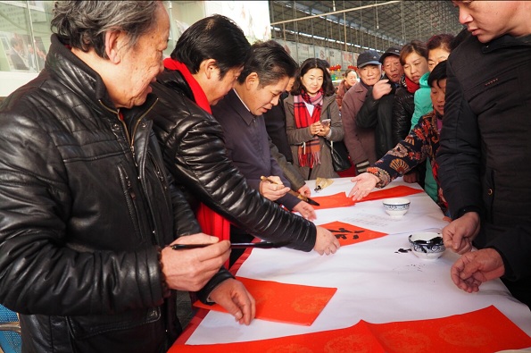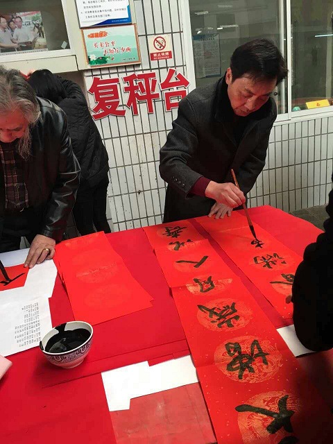 上午9点半,孔可立、万军、张少华、王军、瞿忠谋、李安勋等书法家刚铺好纸、摆好笔墨,市民们就热情地围了上来,观摩创作。市委宣传部副部长陈汉桥也来到现场为市民写福字、送春联。市文联领导吕兵、王开学等领导也现场助阵。