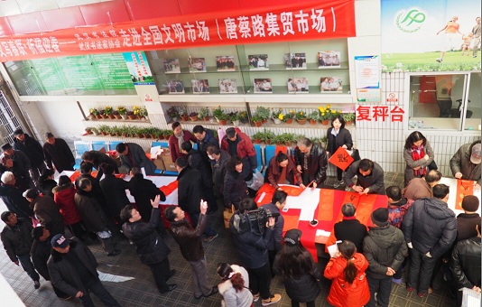 武汉书协今年已组织300余人次书法家在全市范围内参与了50多场送春联公益活动,走进了社区、街道、商圈,送出的春联达到1万5千余副,但走进集贸市场送春联还是头一次。