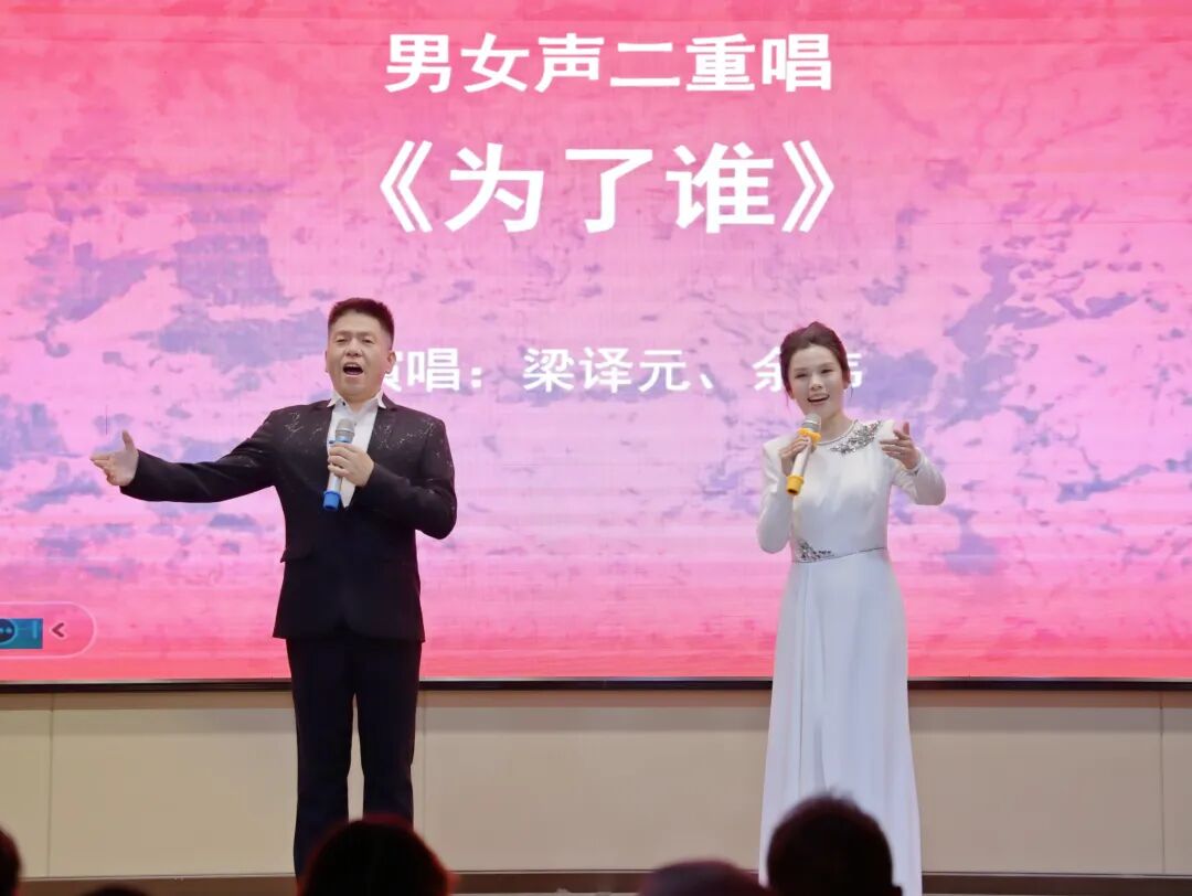 “那些脊梁 / 那些舍身求法横绝大江的/那些为民请命的/那些拼命硬干的脊梁”……江汉区朗诵演讲协会理事吴恩多带来了商泽军《中国的脊梁》(节选)、郭彤《可曾记得我》、佚名《假如生命可以重来》组诗朗诵。梁译元与余伟联袂演绎经典歌曲《为了谁》,“泥巴裹满裤腿,汗水湿透衣背”,熟悉的旋律和深情的歌词,将抗洪精神的内涵诠释得淋漓尽致。