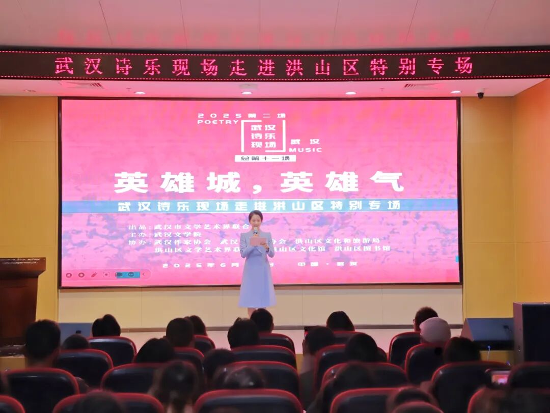6 月 25 日,武汉诗乐现场第 11 期特别专场在洪山区举行,以 “英雄城,英雄气” 为主题,通过诗歌朗诵与音乐表演的完美融合,生动传承和弘扬大别山精神、抗洪精神和抗疫精神,为建设支点、当好龙头,加快推动 “三个优势转化”、重塑新时代武汉之 “重” 凝聚起磅礴的精神力量。