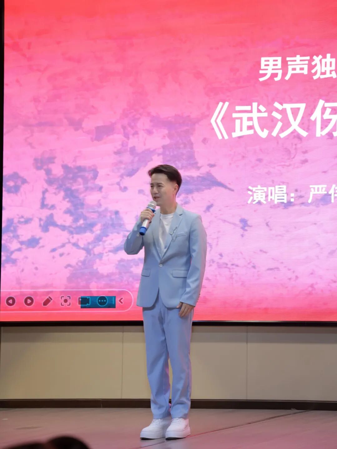 江城朗读者艺术团成员刘昊朗诵刘益善《诗人》、谢克强《坚守》、高金波《社区抗疫人》,用细腻的情感、真挚的语言,生动还原了抗疫期间无数平凡英雄坚守岗位、无私奉献的感人身影。音乐唱作人严伟冬带来的原创歌曲《武汉伢》,融入 “热干面的香,黄鹤楼的光” 等充满武汉本土特色的元素,将城市记忆与抗疫精神紧密相连,唱出了武汉人民的坚韧与乐观,引发全场共鸣。