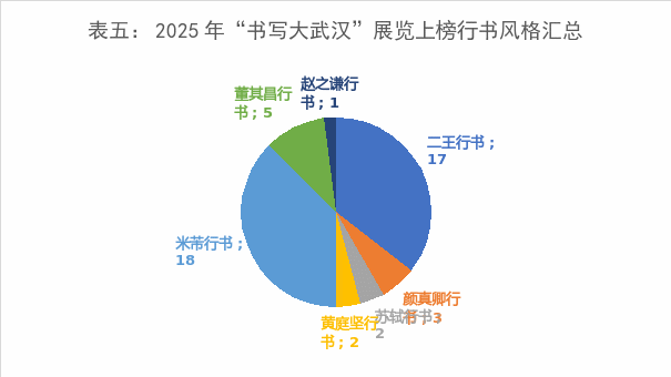 根据各书体投稿总数量,按照一定比例分配,最终评选出获奖、获奖提名、入展和入选作品共291件,现将上榜作品进行书体取法和文本内容来源归纳分析: