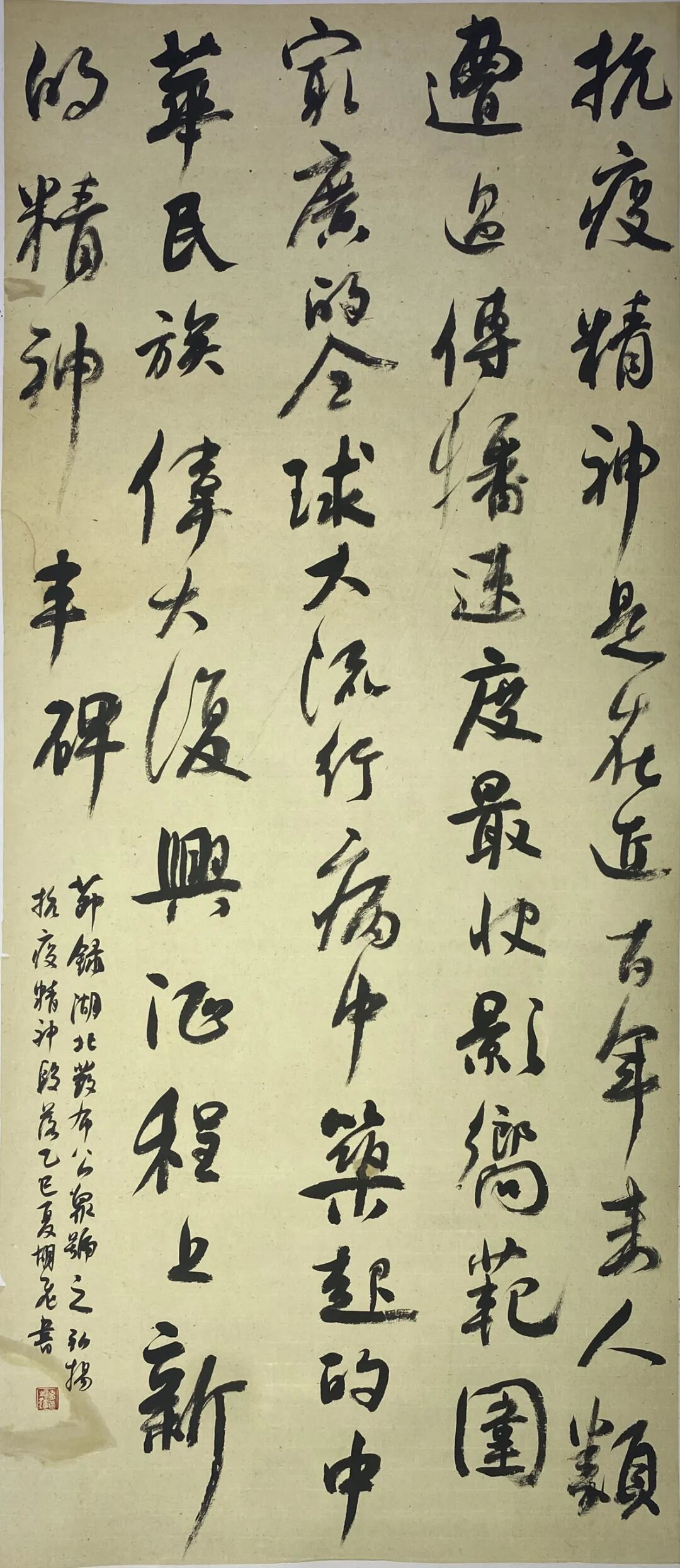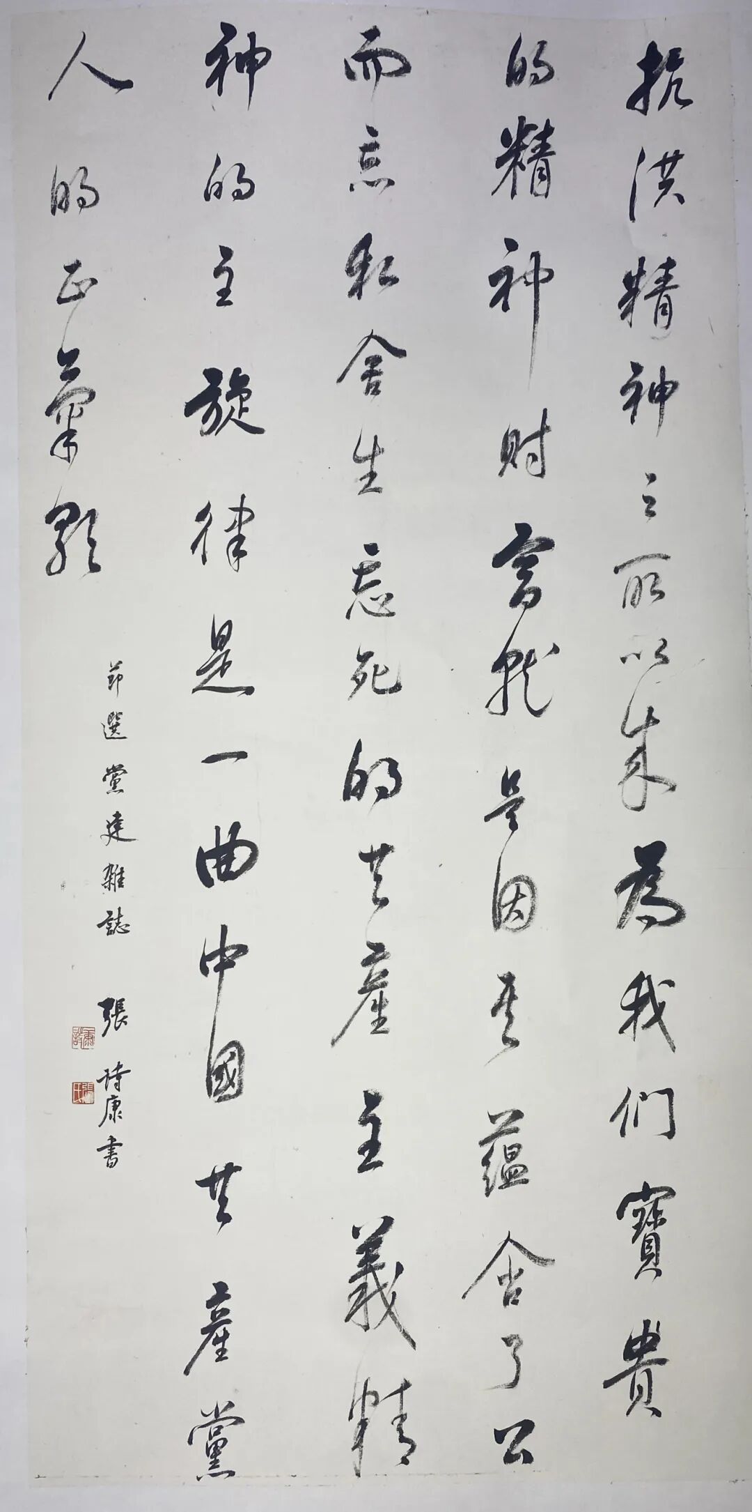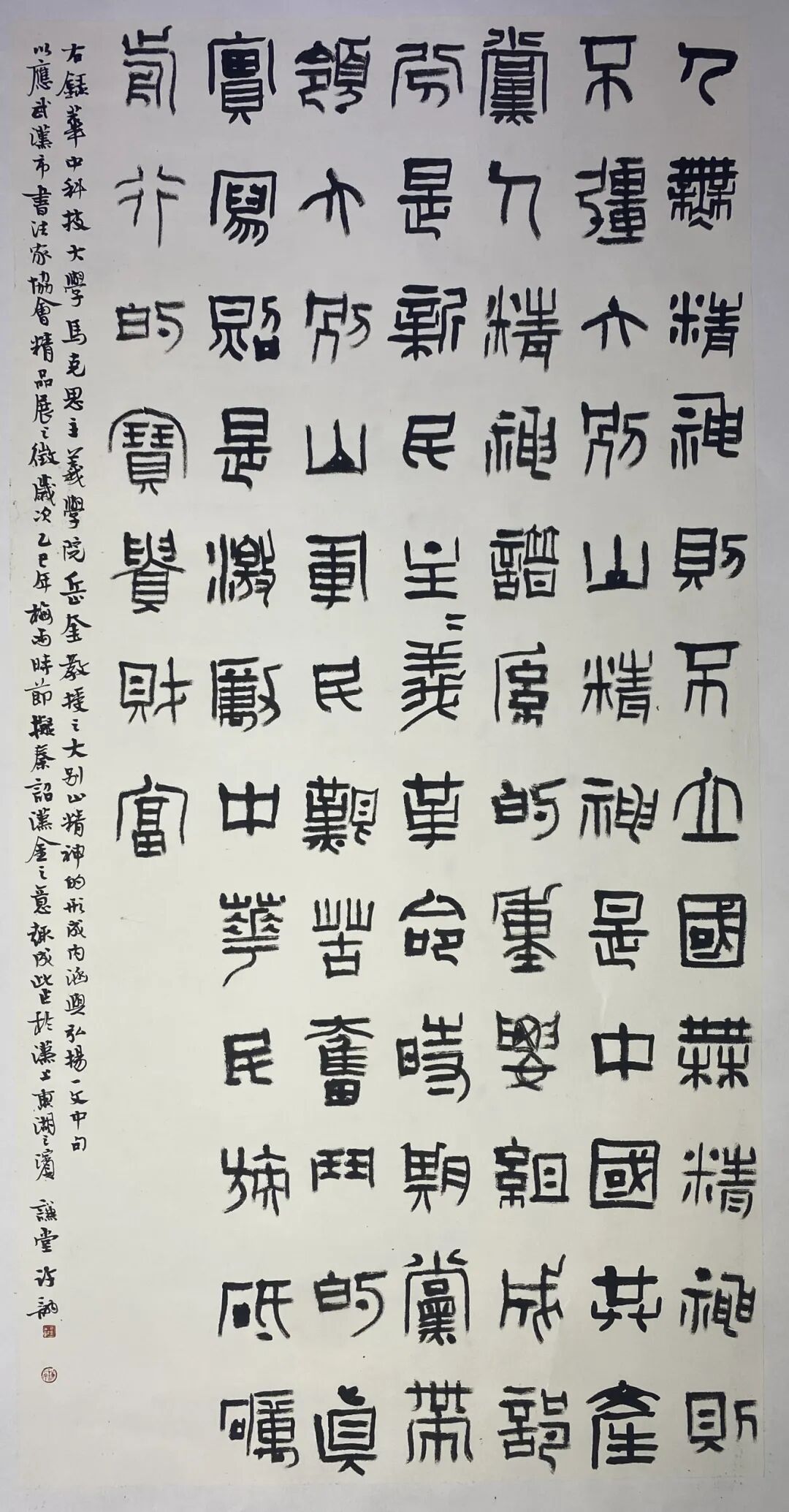 在全市深入贯彻“弘扬三大精神 奋力建成支点”的重要时刻,参展书家积极响应号召,以大别山精神、抗洪精神、抗疫精神为创作主题,充分运用篆、隶、楷、行、草等多元书体及篆刻艺术创作20件书法作品,生动诠释了荆楚大地孕育的伟大时代精神。
