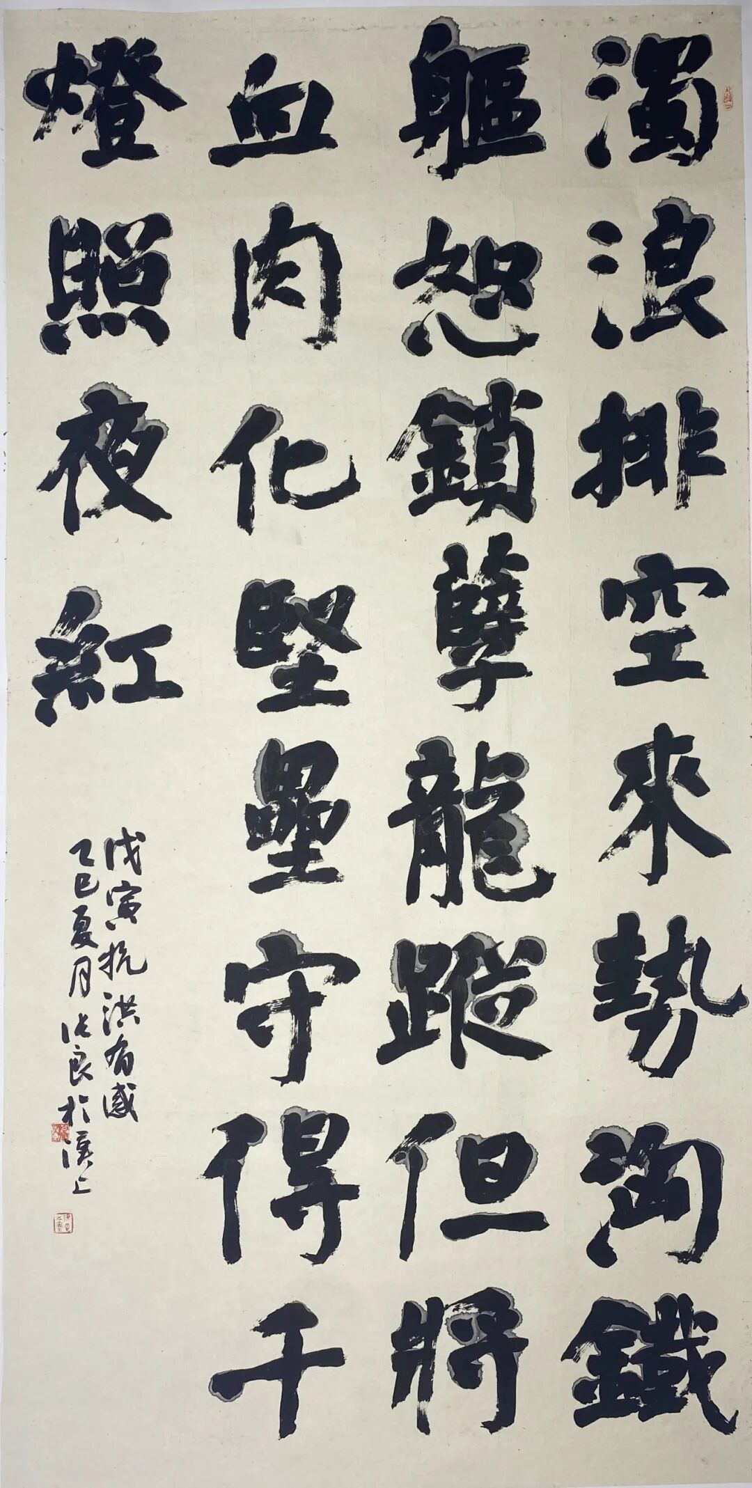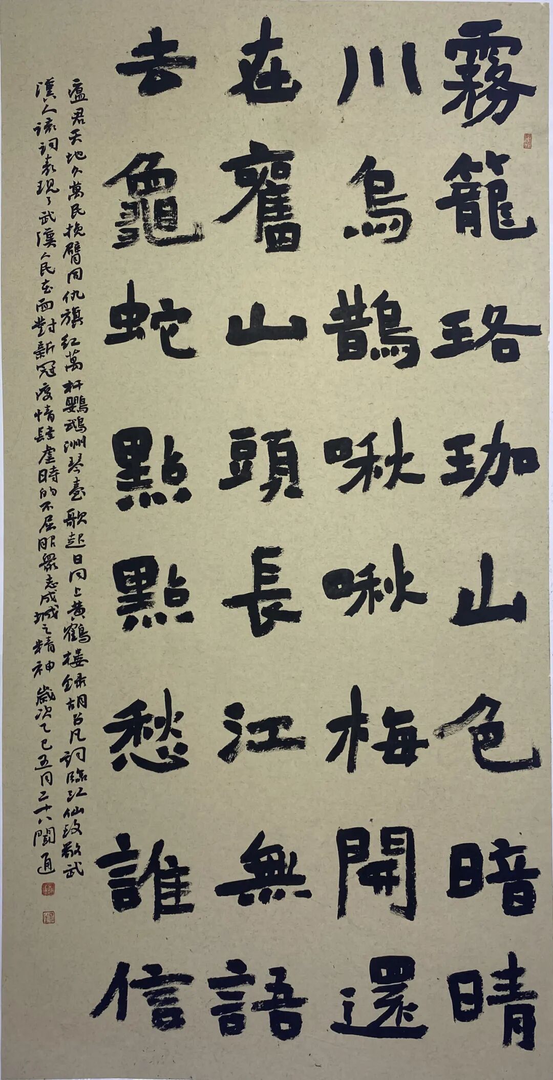 王景的书法作品《颂大别山精神》,以苍劲有力的笔触,展现了依靠群众、团结奋斗的精神内核;张良创作的自作诗《98抗洪感怀》,字里行间饱含深情,致敬抗洪英雄不畏艰险、连续作战的顽强意志;陈兵的《摊破南乡子・致敬武汉抗疫一线医护人员》,通过细腻的笔墨和真挚的情感,传递出对抗疫工作者顾全大局、勇担使命的崇高敬意。这些作品将传统艺术与时代命题深度融合,让青春笔墨迸发震撼人心的力量,使观众在欣赏艺术之美的同时,也能感受到时代精神的强大感召。